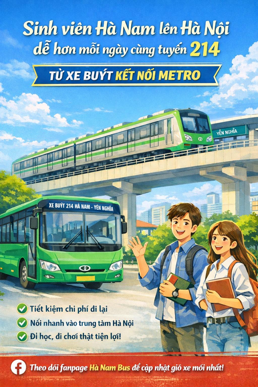 Trong thời điểm giá xăng dầu tăng cao, chi phí đi lại mỗi ngày cũng trở thành nỗi lo với nhiều hành khách, đặc biệt là các bạn sinh viên thường xuyên di chuyển giữa Hà Nam và Hà Nội.Vì vậy, lựa chọn một phương tiện tiết kiệm, thuận tiện và dễ kết nối càng trở nên quan trọng hơn bao giờ hết.Tuyến xe buýt 214 Hà Nam – Yên Nghĩa chính là một giải pháp phù hợp cho các bạn sinh viên trong học tập, làm thêm và sinh hoạt hằng ngày.