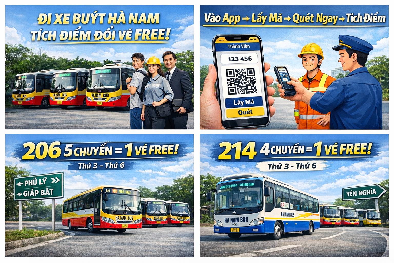 Nhằm chào đón động viên các bạn Tân sinh viên, Công ty Cổ phần Vận tải Ô tô Hà Nam mang đến chương trình Miễn phí 3 lượt đi trên các tuyến xe buýt 206 (Hà Nam - Giáp Bát) và 214 (Hà Nam - Yên Nghĩa).